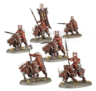 Today I have been looking at the units I will be taking in my initial warband. This is mainly guided by the models I currently have available*, rather than a burning desire to have a powerful list. The majority of the models I will be using come from the Blades of Khorne Start Collecting kit, the contents of which were in the original AoS starter.